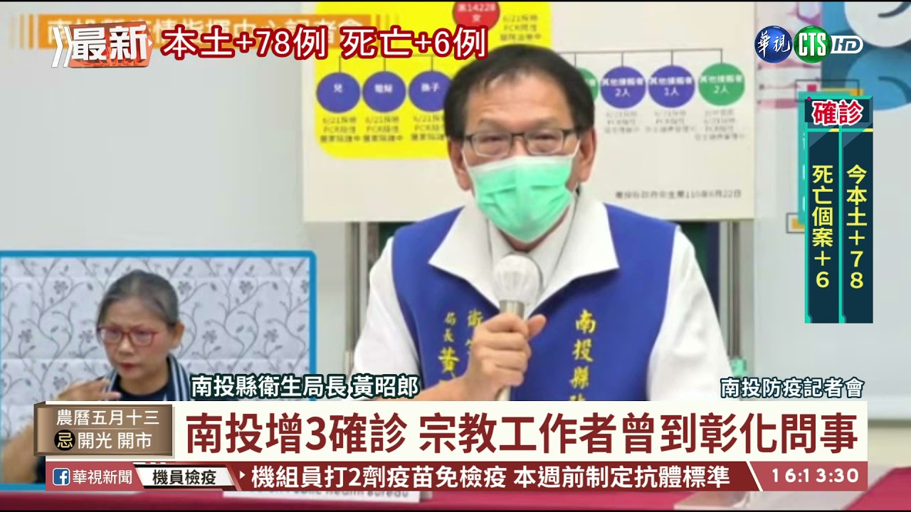 Ulpd 8ragj0ytm from images.chinatimes.com 南投縣政府今(23日)公布8例確診個案,其中5例(案4008、案4009、案4010、案 4216、案 4305),是被外縣市確診個案(案 3157 及案 3445),從台北市萬華區到南投縣東方紅時尚會館工作,密集接觸後確診;2 例為(案 4214、案 4215)是昨南投縣公佈確診案 3614 同住者與友人;1 例為(案 4088)與台北市萬華區確診者. 南投確診男12天到處跑 7家賣場、旅館毀了 2021/06/26 17:16 字級: 字 字 一對在夜市賣炸物而認識的2名男子,因5月的疫情衝擊下決定收攤休息,一同展開趴趴走行程連續出遊12天。